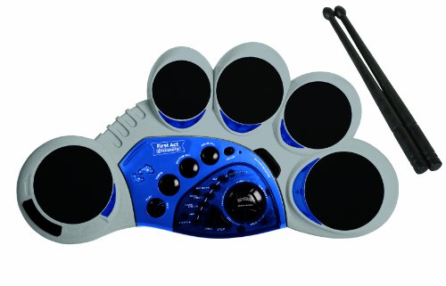 These First Act 5-pad digital drums let you record and play back for songwriting. They come with drum sticks for making all different sounds and include 5 Rubberized drum pads. They come with 6 Drum modes, 10 rhythms, and 10 play patterns. Uses 4 AA batteries (not included).You will not be disappointed with